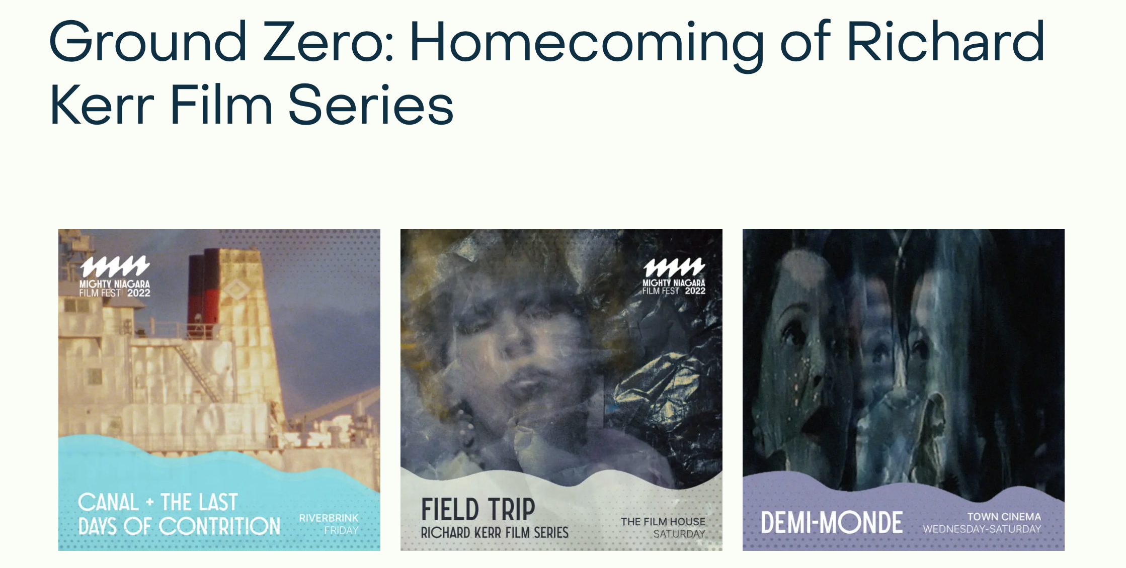 Yes, the 2022 edition of the Mighty Niagara Film Festival (MNFF) is almost upon us, and this year one of the featured artists and honoured guests will be St. Catharines' own Richard Kerr, a filmmaker and installation artist who first studied filmmaking at Sheridan College in the 1970s, and whose filmography dates back to 1976. Kerr began as a documentary filmmaker working in the observational style, but over time his work became more narrative-based, and eventually highly experimental--quite literally so: many of Kerr's projects involve experiments with the materiality of film's technologies.